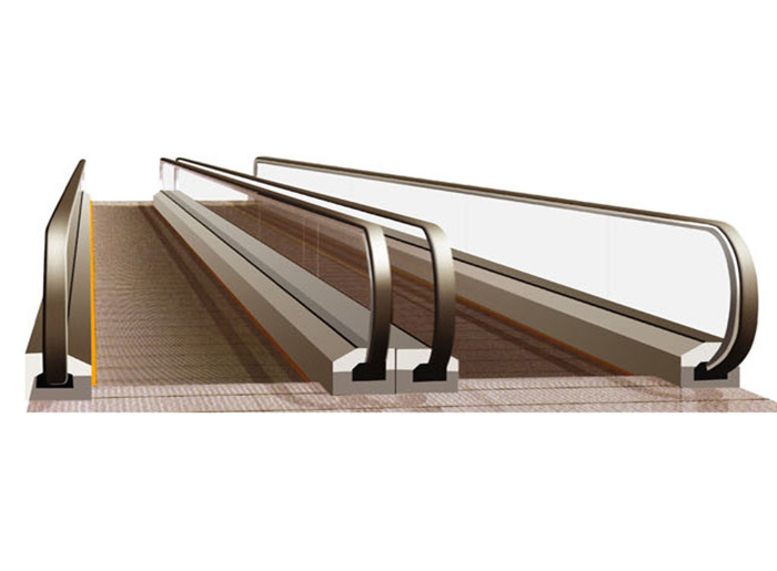 自動人行步道是指帶有循環(huán)運行(板式或帶式)走道,用于水平或傾斜角度不大于12°運送乘客的固定電力驅(qū)動設備。自動人行道適用于車站、碼頭、商場、機場、展覽館和體育館等人流集中的地方。出現(xiàn)于20世紀初。結(jié)構(gòu)與自動扶梯相似,主要由活動路面和扶手兩部分組成。通常,其活動路面在傾斜情況下也不形成階梯狀。按結(jié)構(gòu)形式可分為踏步式自動人行道(類似板式輸送機)、膠帶式自動人行道(類似帶式輸送機)和雙線式自動人行道。為了達到與自動扶梯零部件通用和經(jīng)濟性的目的,常采用梯級結(jié)構(gòu)和相同的扶手結(jié)構(gòu)。扶手應與活動路面同步運行,以保乘客安全。自動人行道的運行速度、路面寬度和輸送能力等均與自動扶梯相近,最大傾角一般不超過12°。